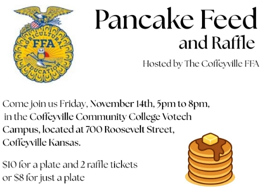 The Coffeyville FFA Chapter will hold a pancake feed tonight in the CCC Tech Campus building across the street from the high school.
