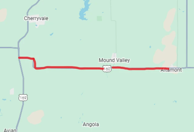 The project's goal is to improve US-160 from Gartner Avenue in Altamont, west to US-169. Possible improvements include widening the driving lanes, improving existing curves, and adding shoulders.