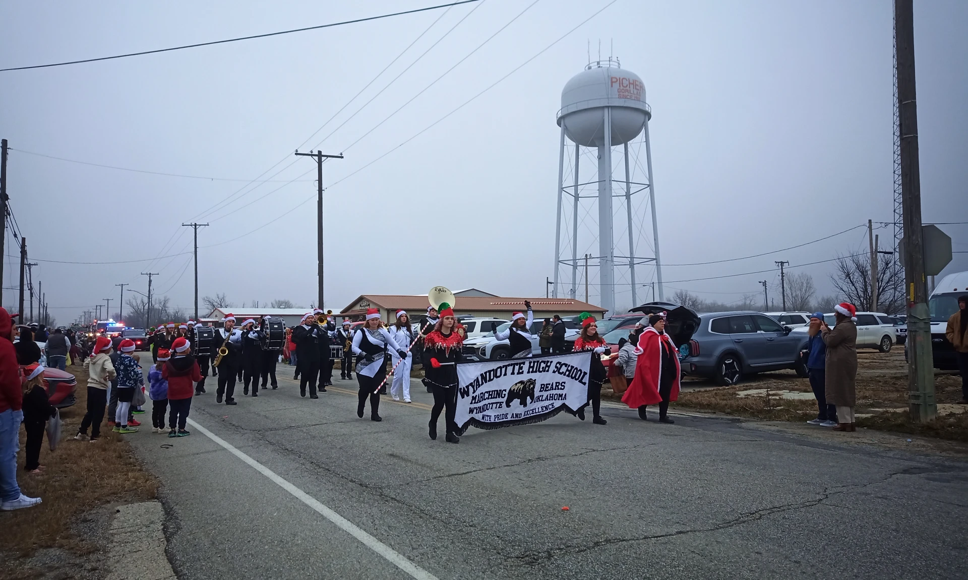 Hundreds lined U.S. 69 through Picher with local first responders and organizations from surrounding towns participating, including the Wyandotte High School Marching Bears.