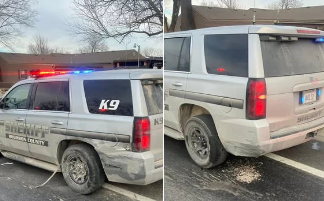 On Friday, two SUVs belonging to the Bourbon County Sheriff's Office were pulled alongside a roadway as deputies made a traffic stop. Another vehicle approached and struck both vehicles. There was minor damage done to the driver’s side of both SUVs, but no injuries were reported.