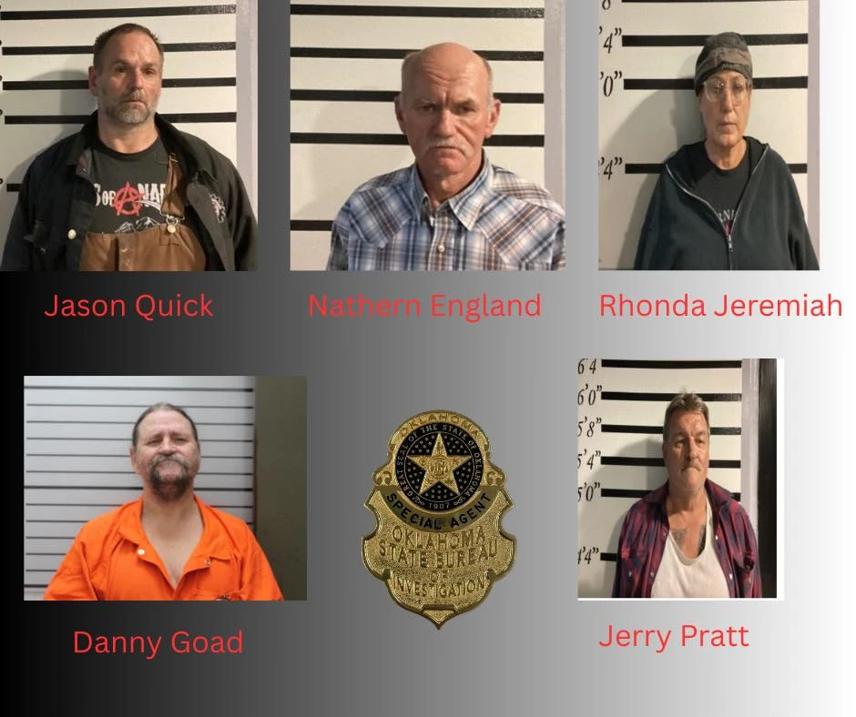 46-year-old Jason Quick, 56-year-old Jerry Pratt, and 56-year-old Rhonda Jeremiah were also arrested and booked into the Sequoyah County Jail on charges of Accessory After the Fact.