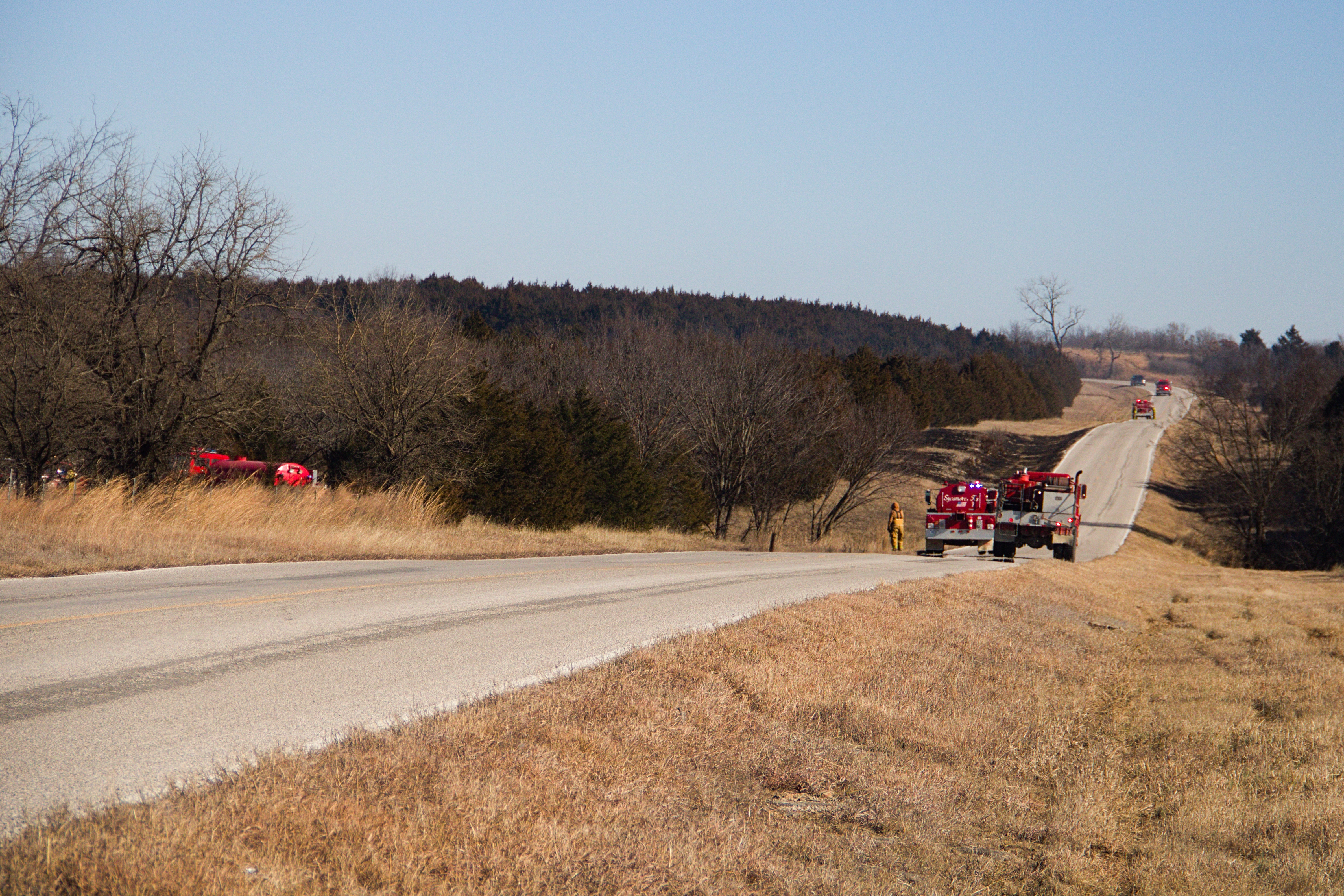 Multiple agencies from around the county responded to assist with the fire. The total acreage impacted by the fire is not known at this time. While grassland fire danger is less severe this week with the exception of tomorrow, residents are still discouraged from burning or anything that may cause a spark.