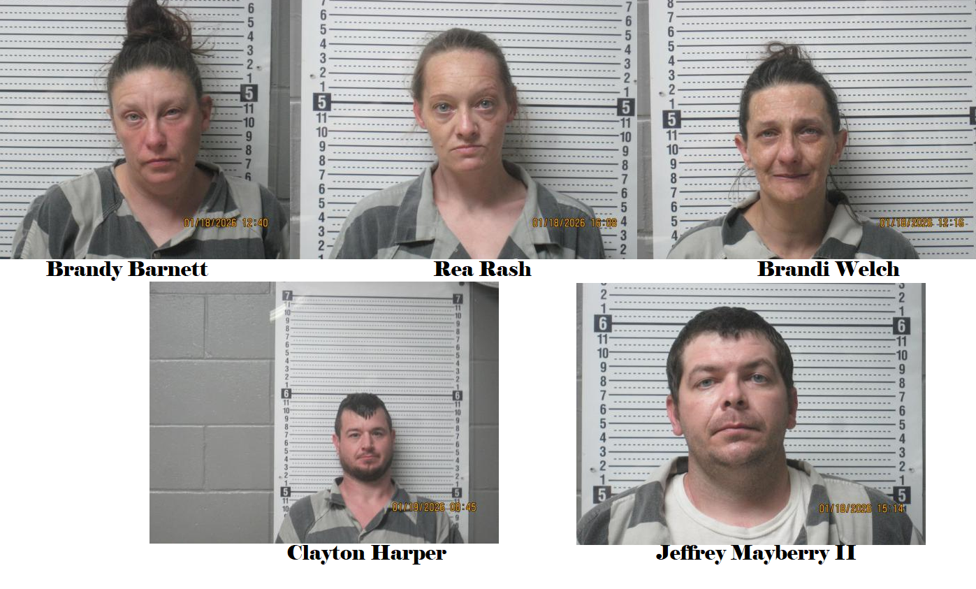 On Saturday, deputies from the Montgomery County Sheriff's Office served a search warrant on a residence in the 600 block of East 9th Street in Cherryvale. During the search, deputies discovered 172 grams of methamphetamine and 280 grams of marijuana, along with various drug paraphernalia. The owner of the home 37-year-old Rae Rash was taken into custody along with 42-year-old Brandy Barnett, 41-year-old Brandi Welch, 33-year-old Clayton Harper, and 36-year-old Jeffrey Mayberry. A juvenile was also found in the home and placed in protective custody.