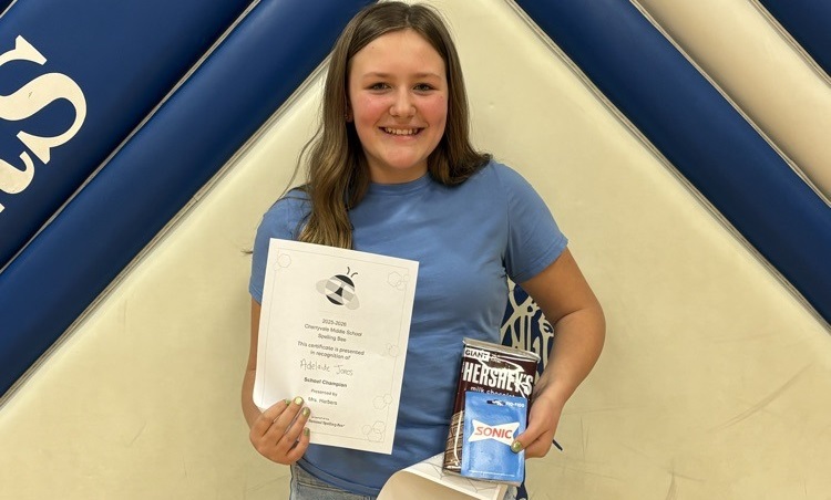 Adelaide Jones is the winner of the Cherryvale Middle School Spelling Bee. Jones's winning word was lye.