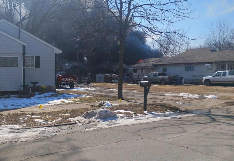 Just before 1:00pm Tuesday C-F-D was called to a structure fire at the intersection of Willow and New Streets. Units arrived on the scene to find a two-story, detached garage with heavy fire showing on the upper level.