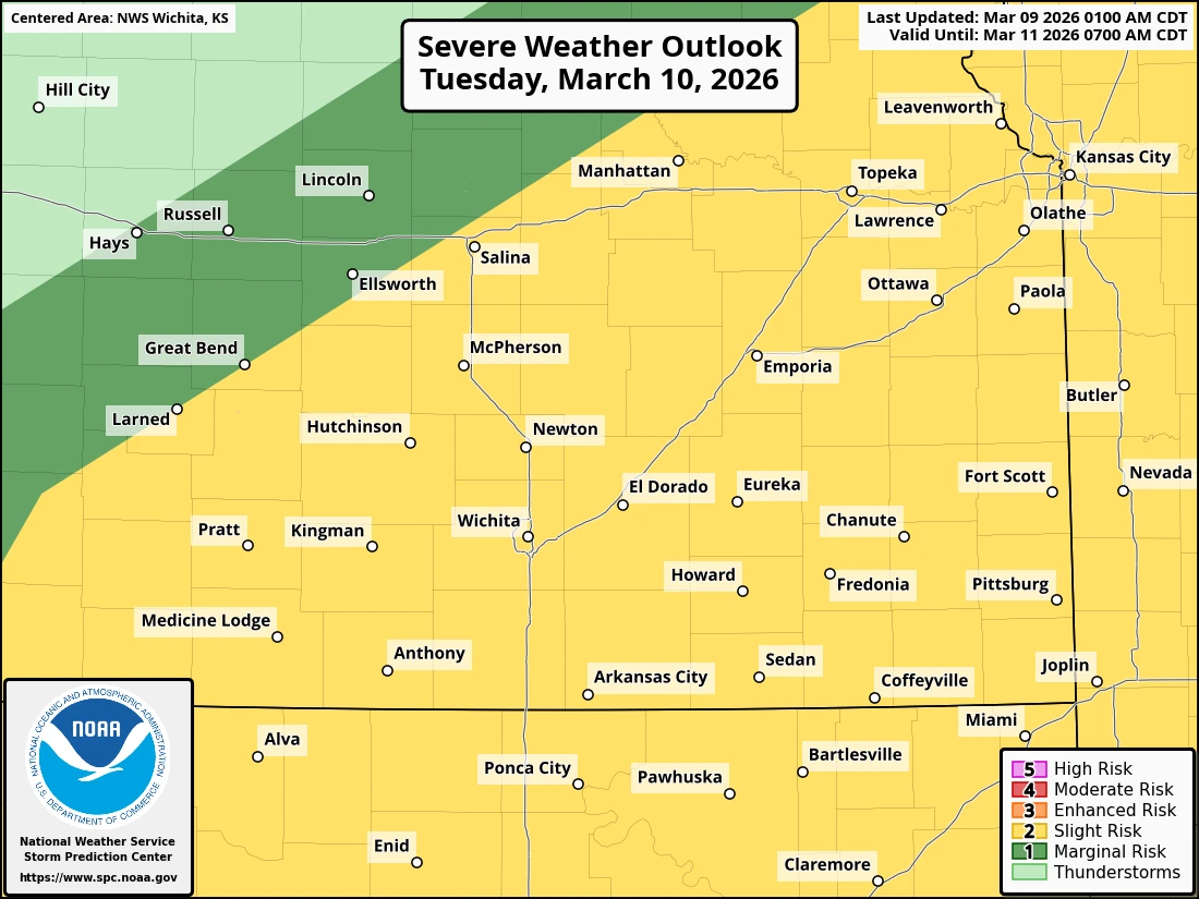 Finally, very high grassland fire danger is expected this afternoon for locations east of the Kansas Turnpike with gusty southwest winds and warmer temperatures, so be mindful of anything that could cause a spark.