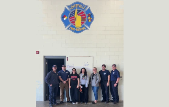 Students from the FKHS Computer Graphics 2 class designed and delivered a new logo for the Fire Department. Firefighters and students worked together to install the new logo in the Coffeyville Emergency Services building on 11th Street. The project provides an example of how local schools can help the community while providing real-life experiences for students.