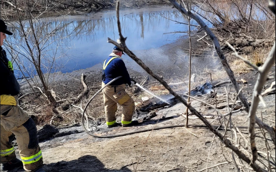 The firefighting task force from Montgomery County helps with wildfire control in Central Kansas.