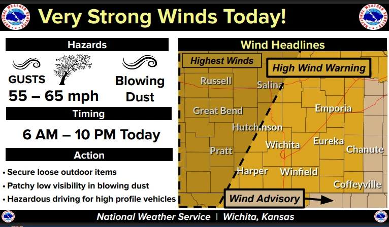 High winds are still expected for today, with gusts up to around 50 mph possible for southeast Kansas and northeast Oklahoma.