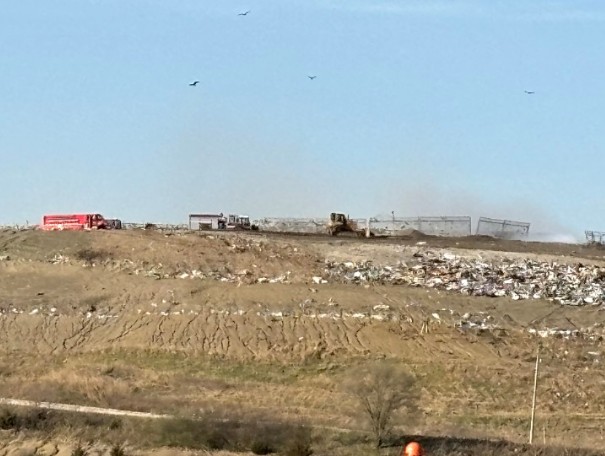 Witnesses in the area report that it is a large fire in the north end of the landfill with heavy smoke.