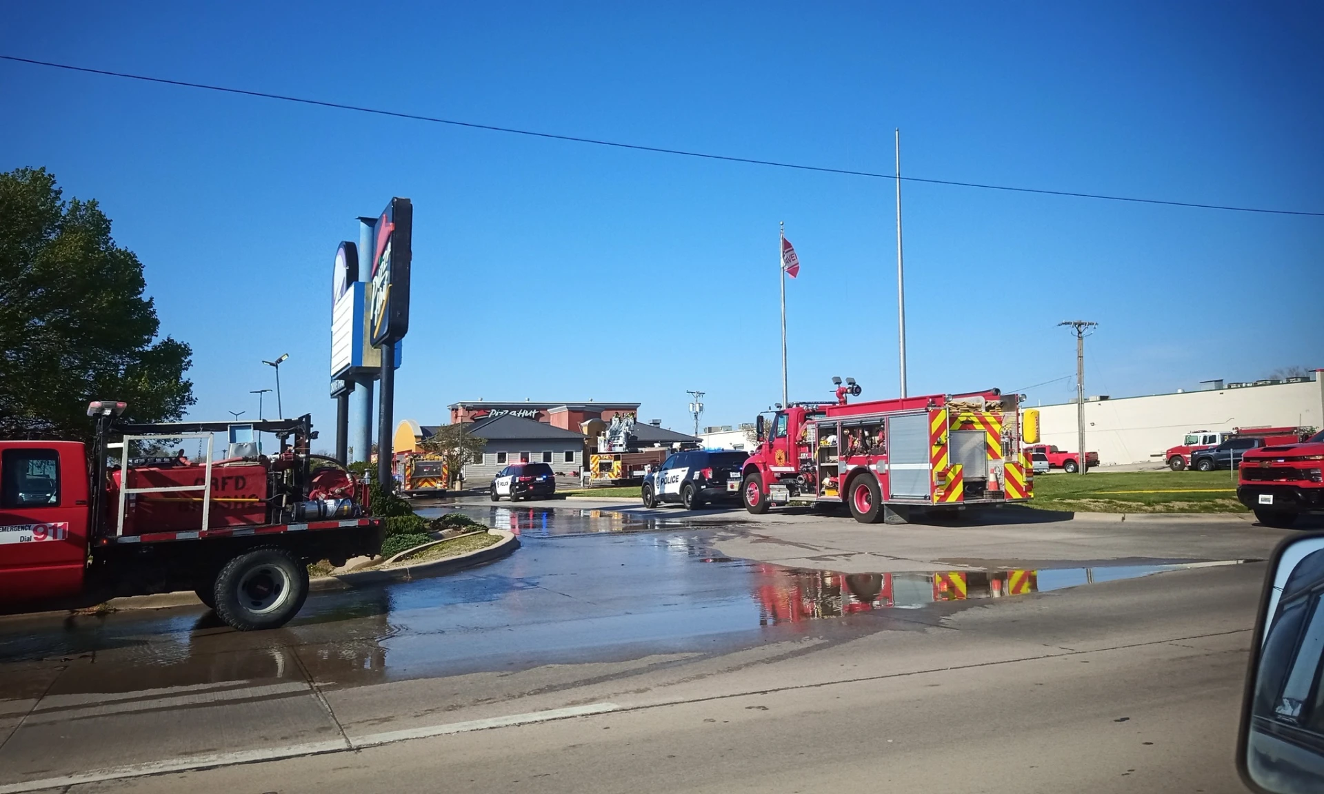 Crews respond to a fire at the Pizza Hut in Coffeyville.