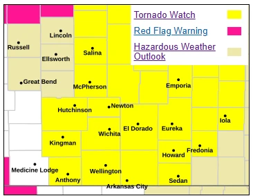 The National Weather Service has issued a tornado watch through 9 p.m. for counties in Kansas along the state line, including Chautauqua and areas to the north and west. Wilson County is also included in the watch, although Montgomery County is not.