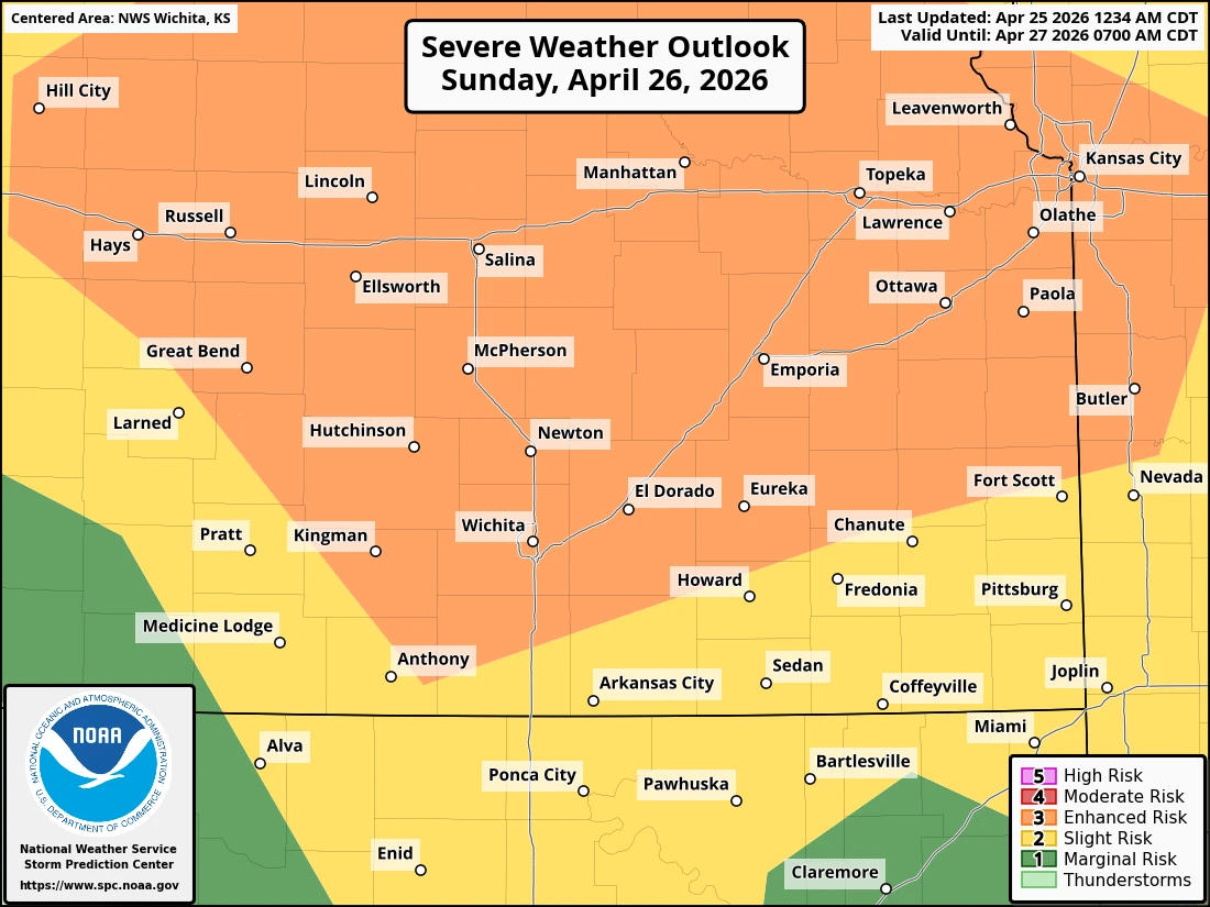 For Sunday, there is a greater chance of severe weather for Kansas, although the forecast remains highly dependent on the timing of the weather and the condition of the atmosphere tomorrow afternoon. Storms are expected to develop over western Kansas and track northeast, with timing mainly expected after dark. Stay tuned to KGGF for additional updates and severe weather coverage if needed.