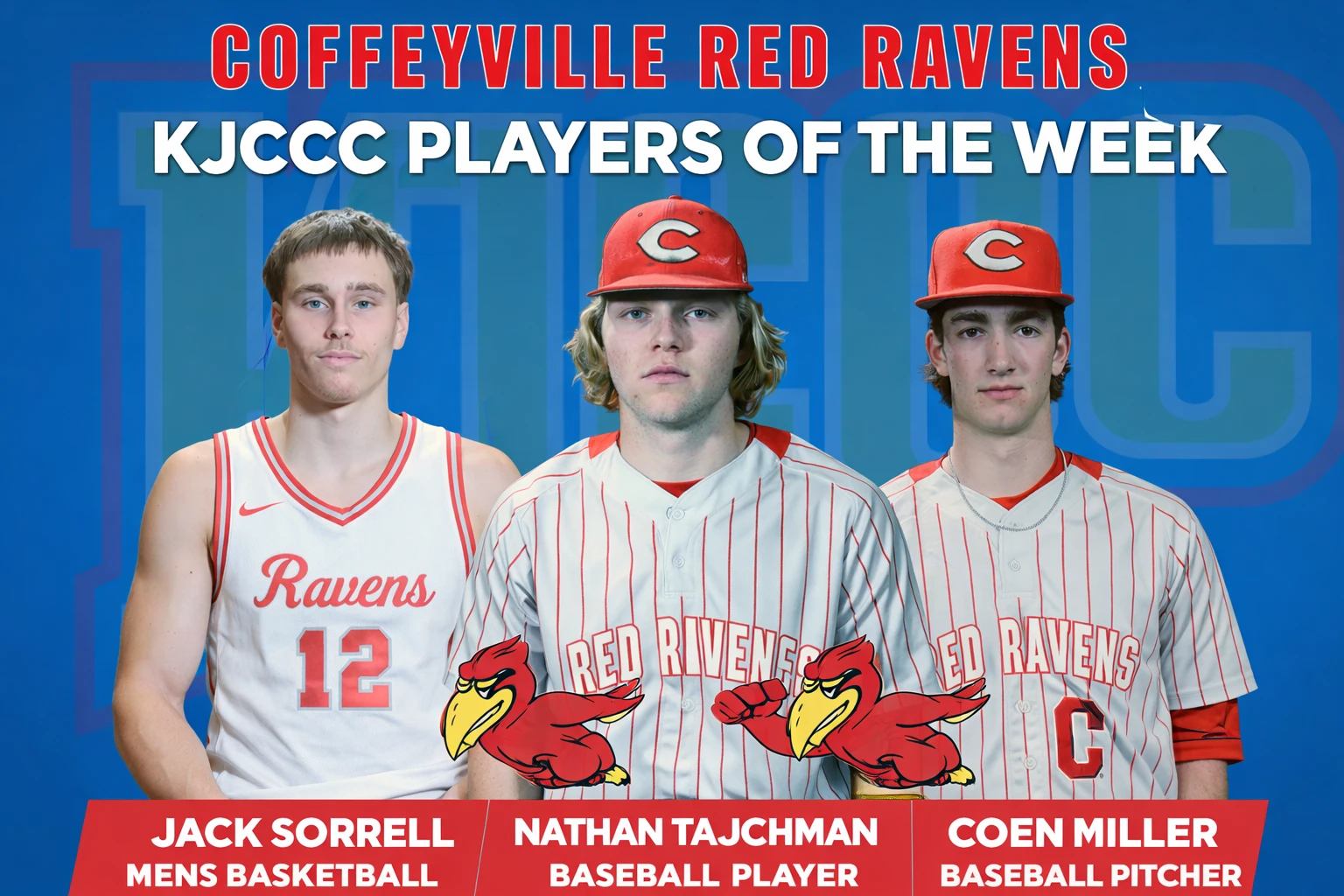 It's a big week for the Coffeyville Community College Red Ravens, as three athletes earn KJCCC Player of the Week honors.